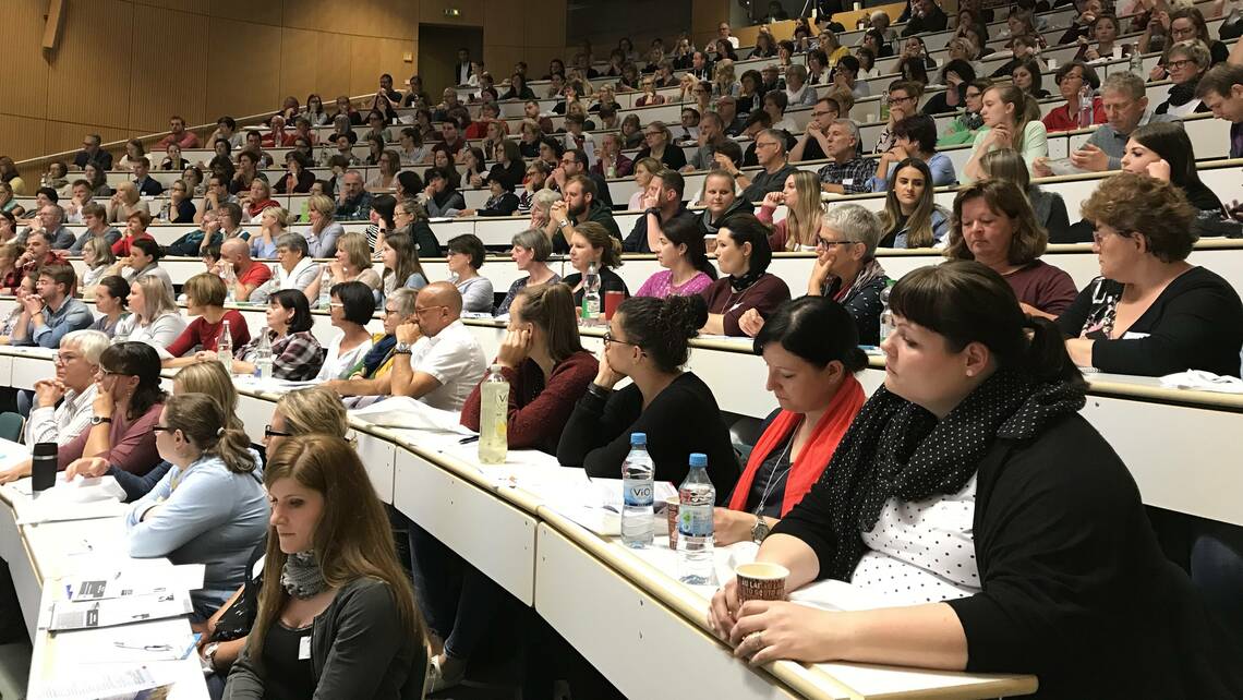 Mit seinem Vortrag und Plädoyer für mehr Menschlichkeit in der Intensivpflege beeindruckte der Fachkrankenpfleger die rund 350 Teilnehmer in dem vollbesetzten Hörsaal des Uniklinikums.