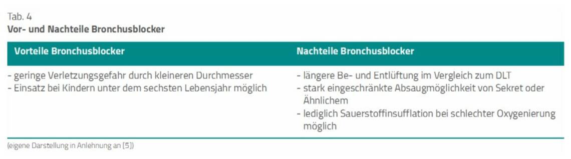 Die Ein-Lungen-Ventilation ist für die Thoraxchirurgie unabdingbar. Für die seitengetrennte Beatmung während der Operation können Doppellumentubus oder Bronchusblocker zum Einsatz kommen. Der Beitrag beschreibt die Vor- und Nachteile beider Intubationstechniken.