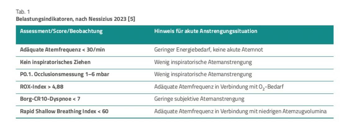 Belastungstoleranz. Innerhalb der drei Mobilisationsphasen ist es wichtig, die gewählten Maßnahmen und Techniken genau an die jeweiligen momentan vorhandenen Ressourcen der Patienten anzupassen. Gerade bei Intensivpatienten ist es schwierig, eine geeignete Trainingsbelastung zu finden. Neben subjektiven Indikatoren, wie der eventuell möglichen Selbsteinschätzung der Patienten oder dem (pflege)therapeutischem Bauchgefühl, lassen sich einige Parameter aus der Atemphysiotherapie und Beatmungsmedizin als Belastungsindikatoren für die Frühmobilisation heranziehen (Tab. 1).