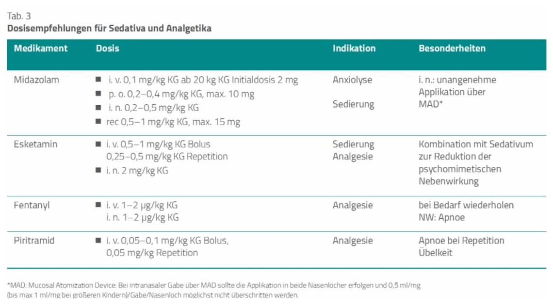 Dazu enthält die Leitlinie Dosisempfehlungen für Sedativa und Analgetika (Tab. 3) [1].