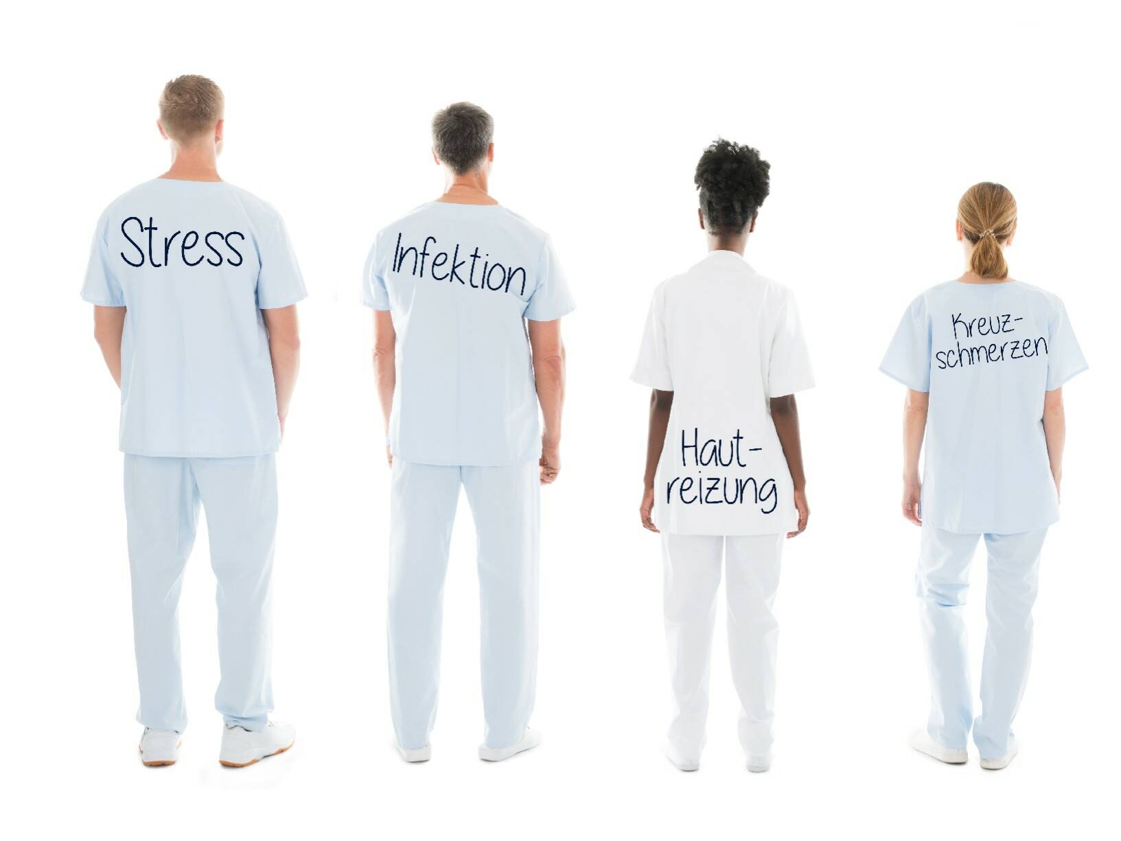 Zu den typischen Arbeitsbelastungen von Pflegenden gehören unter anderem das schwere Heben und Tragen, langes Stehen und Gehen sowie der Schichtdienst. Aber auch Zeitdruck, die geforderte hohe Konzentration und Verantwortung sowie psychisch belastende Situationen können sich auf die Gesundheit auswirken (3).