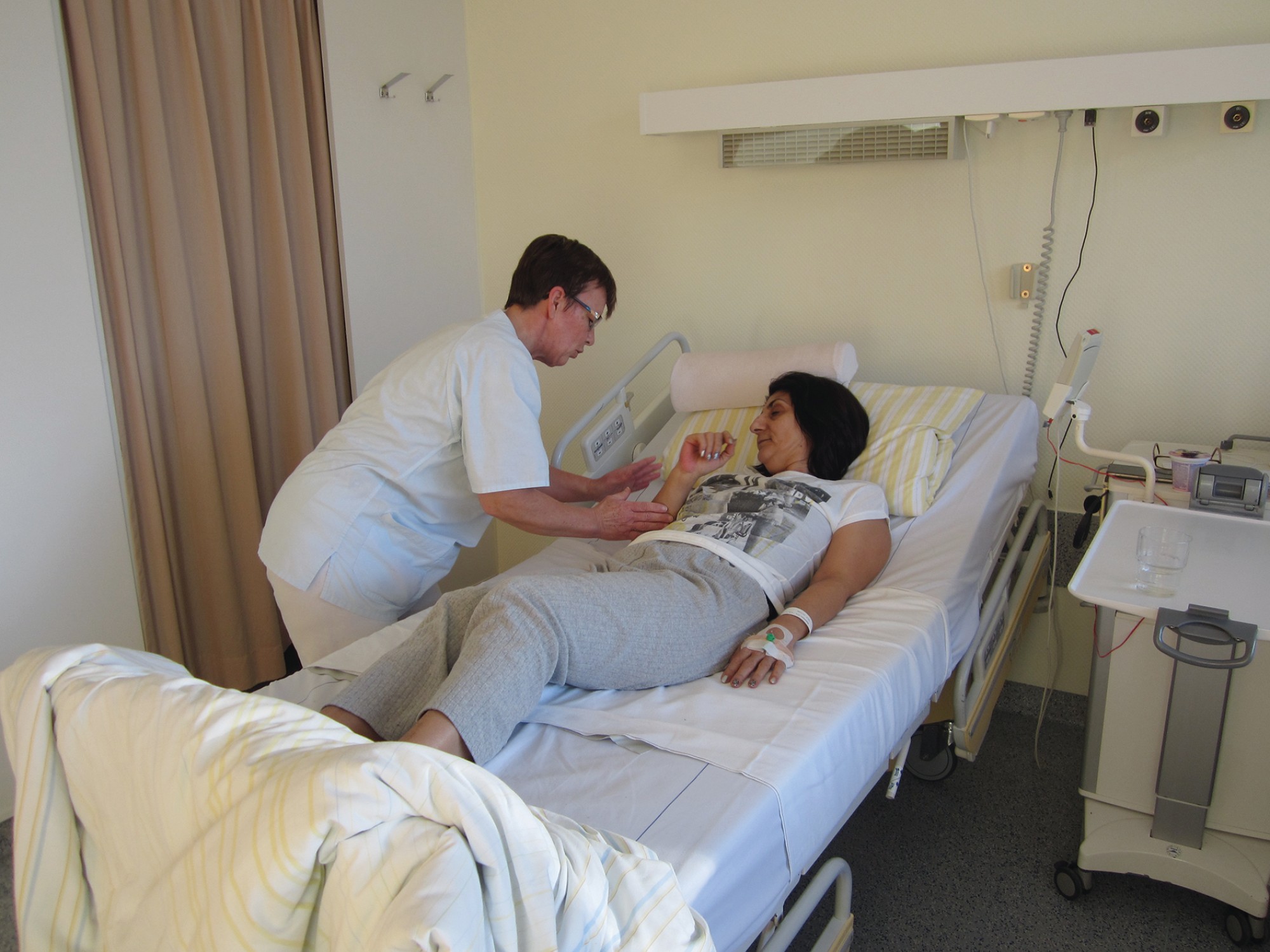 Die Möglichkeiten der postoperativen Mobilisation können mit dem Patienten bereits im Vorfeld erarbeitet werden, etwa um Schmerzen besser zu regulieren und Selbstständigkeit zu fördern. Erfahrungsberichte zeigen, dass Patienten sich dann besser an eine Situation anpassen können. Aber auch postoperativ kommt der Qualität der Anleitung eine Bedeutung zu, um Eigenaktivität zu fördern und Ängste zu vermindern. Aufgrund der individuellen Unterschiede der Situationen und beteiligten Akteure kann keine allgemeingültige Handlungsanweisung vorgegeben werden. Die gegenseitige Bewegungsanpassung der Beteiligten ergibt sich immer erst innerhalb der Interaktion, sodass einzelne Bewegungsabläufe nicht im Detail planbar sind. Die folgende Darstellung stellt daher lediglich einen Anhaltspunkt für einen möglichen Ablauf dar. Erarbeitet wird hier die Kompetenz, die Arme und Beine gezielt für einen Bewegungsablauf einzusetzen.