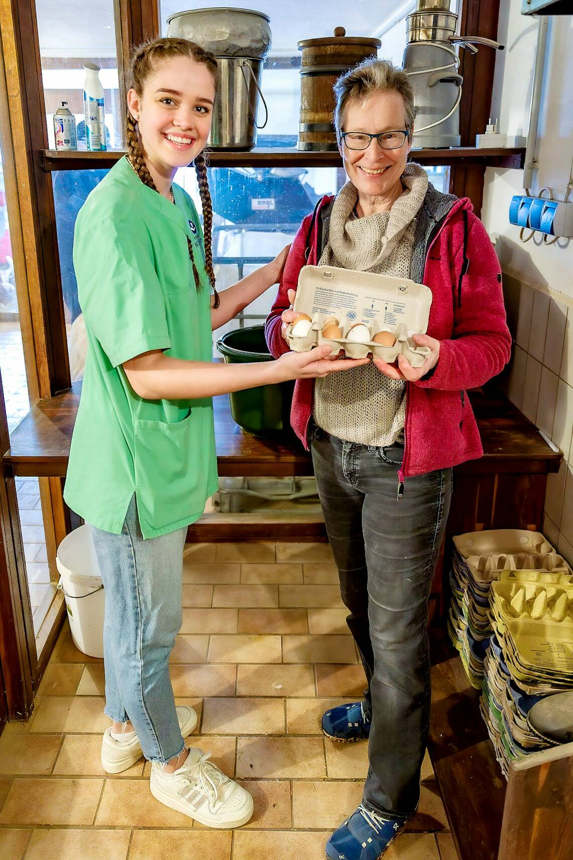 Auch die Landwirtschaft lebt fort. Zwar funktioniert sie völlig unabhängig vom Pflegebetrieb, verhilft ihm aber zu seinem Alleinstellungsmerkmal: Die Bewohnerinnen und Bewohner können überall da, wo sie Lust haben, mit anpacken. „Das hat sich so ergeben“, erzählt Guido Pusch. Die Senioren seien zu ihm gekommen und hätten gefragt, ob sie mit in den Stall und aufs Feld kommen können. Insbesondere bei den Männern beliebt: Trecker fahren. Die Senioren helfen bei der Ernte, füttern die Schweine, misten aus oder reparieren Landmaschinen. Auch in der Küche fassen sie mit an: backen Apfelkuchen aus dem Obst, das sie gepflückt, oder Waffeln aus den Eiern, die sie morgens aufgelesen haben. „Die Menschen brauchen bei uns keine künstliche Bespaßung wie Bingo spielen. Sie erfüllen wichtige Aufgaben, fühlen sich gebraucht. Das macht sie glücklich“, sagt Guido Pusch. Sein „Pusch-Konzept“ wurde 2022 mit dem Deutschen Demografie-Preis ausgezeichnet, außerdem schaffte er es damit unter die Finalisten des Deutschen Nachhaltigkeitspreises.
