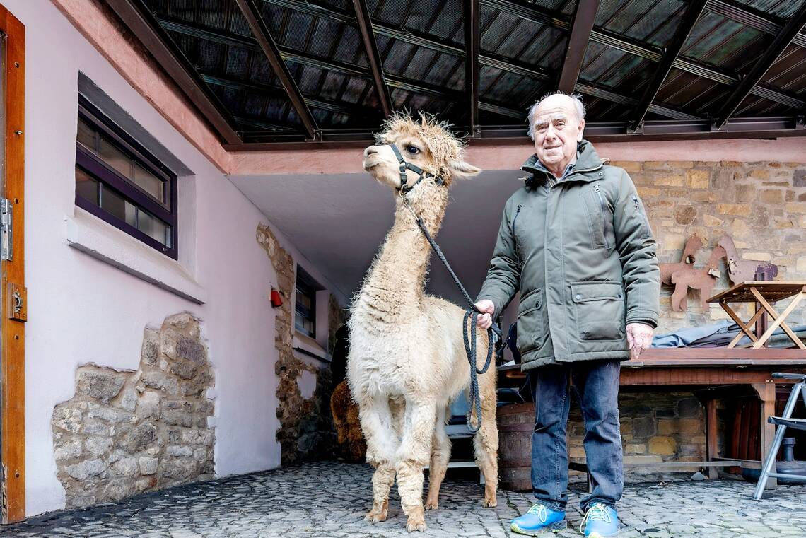 Sein Bauernhof sei kein Streichelzoo, betont der Landwirt. Auf 30 Hektar bewirtschaftet er überwiegend Grün- und einige Ackerflächen. Daneben hält er Hühner und – jedes Jahr bis zum Martinstag – 20 Gänse. Eine Handvoll Schweine und vier Rinder. Drei Hasen, acht Wachteln, 109 Bienenvölker, Karpfen und Saiblinge in einem Angelteich – das klingt nach Urlaub auf dem Bauernhof, ist jedoch solide Nutztierhaltung. Honig und Fleisch werden verkauft oder direkt auf dem Hof verwertet. Einzig die sieben Alpakas dienen wie die zwei Katzen und der Hofhund möglicherweise eher therapeutischen denn wirtschaftlichen Zwecken. Allmorgendlich, wenn das Wetter mitspielt, macht sich eine kleine Karawane aus alten Menschen und wuscheligen Minikamelen auf den Weg durchs Dorf bis zur Weide, abends geht’s zurück in den Stall. Den Bewohnern, die zu krank oder zu schwach sind, um aufzustehen, bringt Guido Pusch auch mal ein Alpaka oder ein Huhn zum Streicheln ans Bett. „Es ist diese Ursprünglichkeit, die den Menschen gefällt“, mutmaßt der pflegende Bauer, „insbesondere der Umgang mit den Tieren, in denen viele Bewohner Freunde finden.“